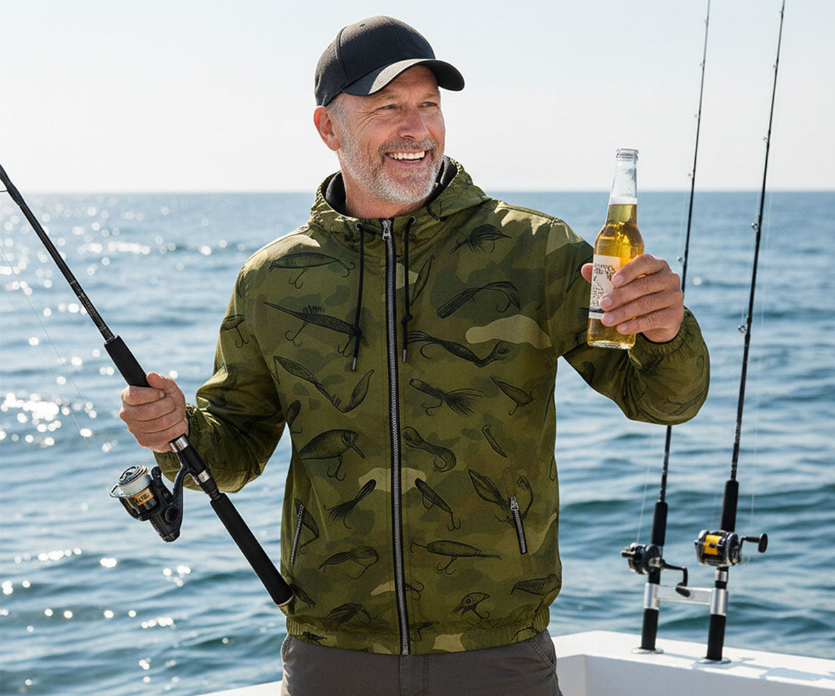 Navy Fishing Lure Windbreaker Jacket �C Lightweight Hooded Outdoor Jacket for Men